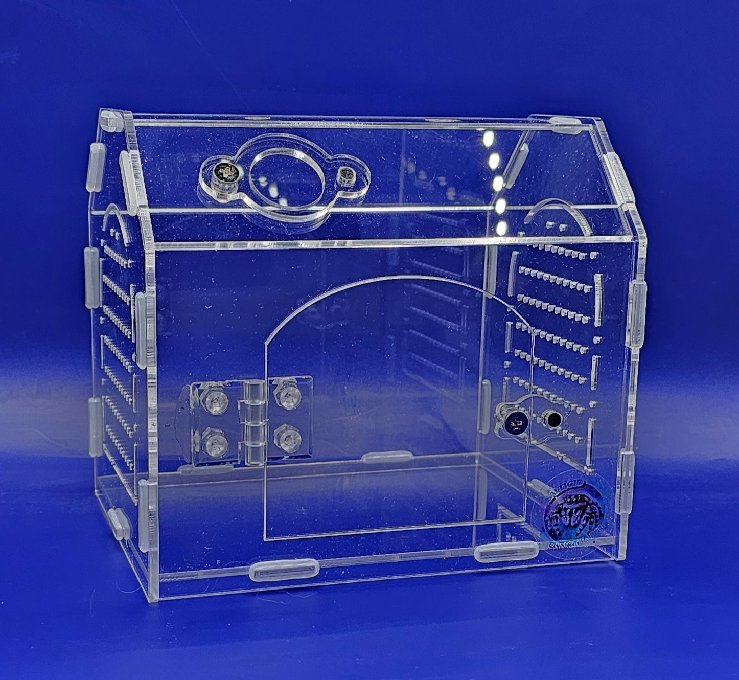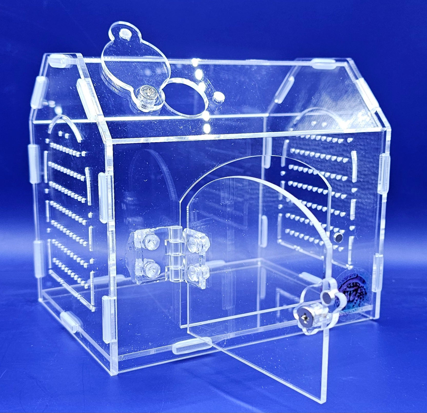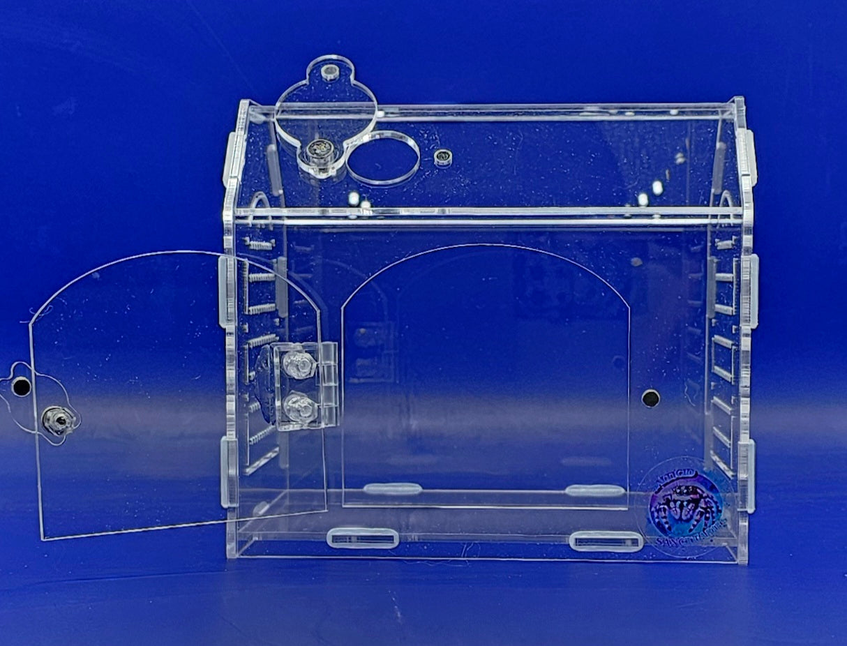 House also includes a feeding/misting hole with magnetic cover!